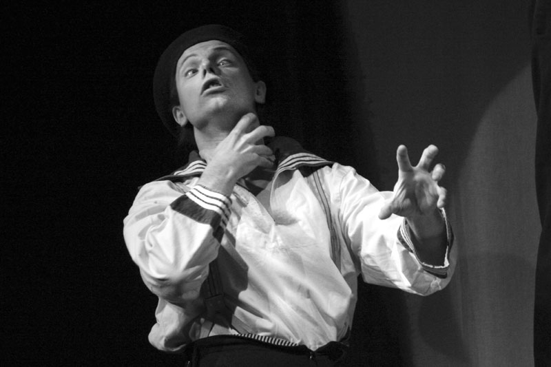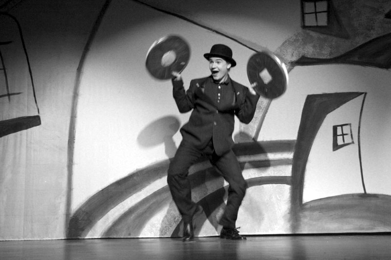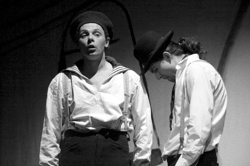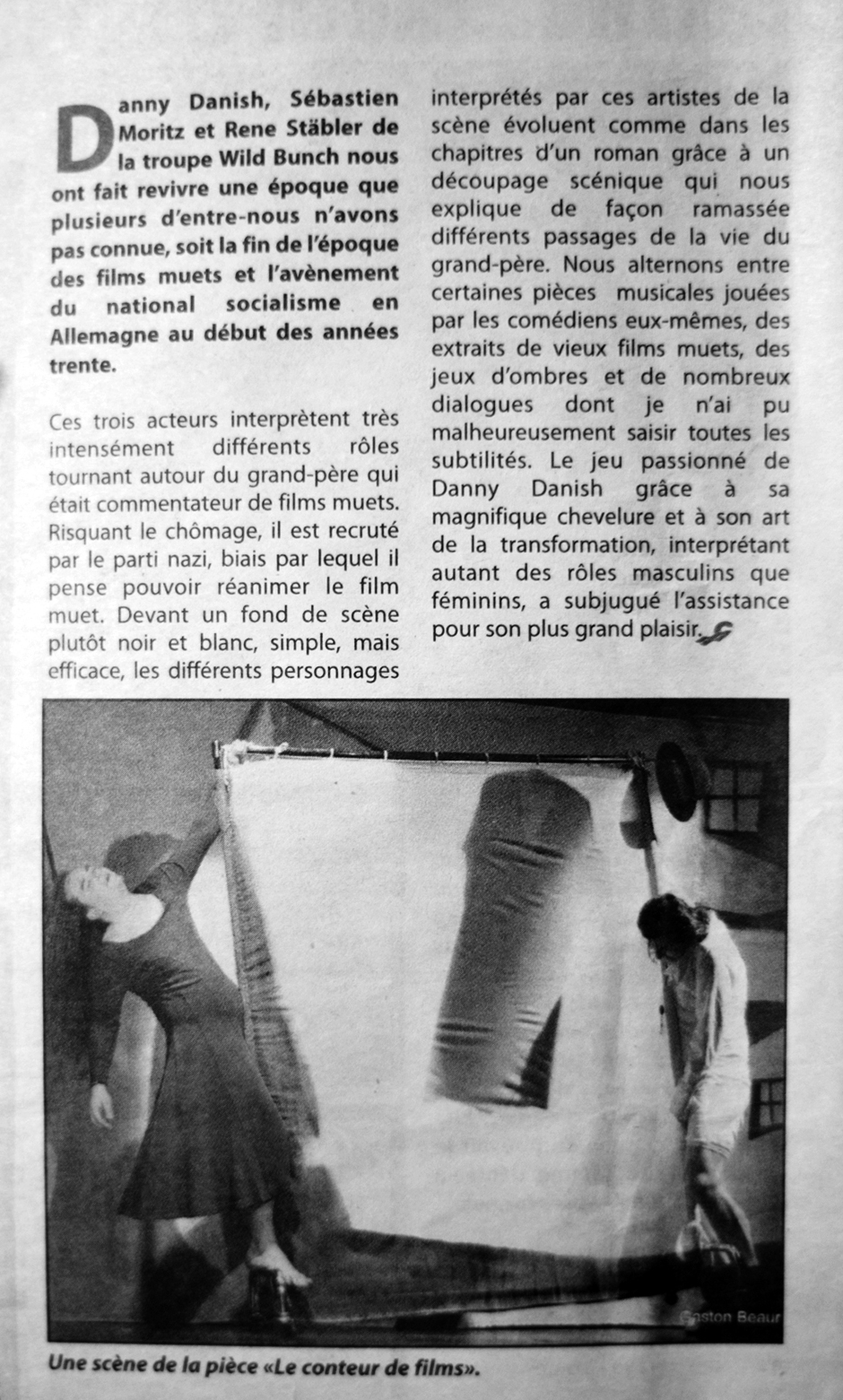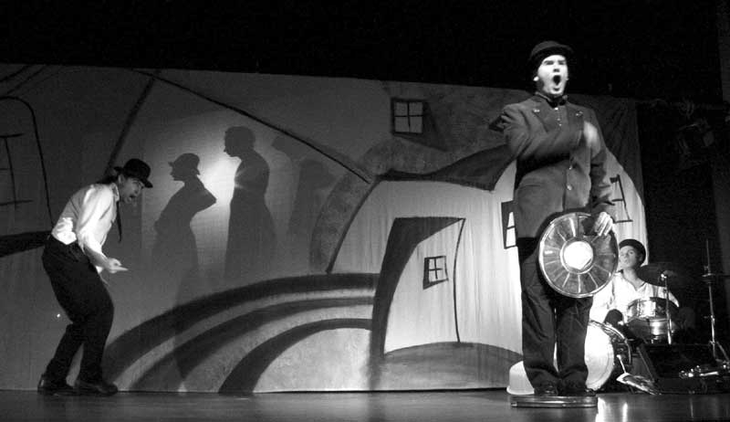 Garderobenständer. Eine wichtige Rolle spielen naturgemäß eingeblendete kurze Stummfilm-Ausschnitte, die aber dem konzentrierten Spiel der Darsteller nichts wegnehmen, und auch die Leinwand fügt sich ganz unauffällig ein in das einfache, aber überzeugende Bühnenbild SpielArt |